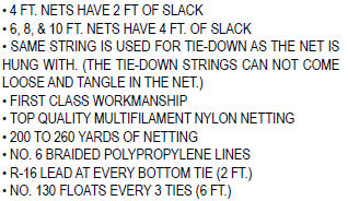 ** COMMERCIAL TIE DOWN GILL NETS**